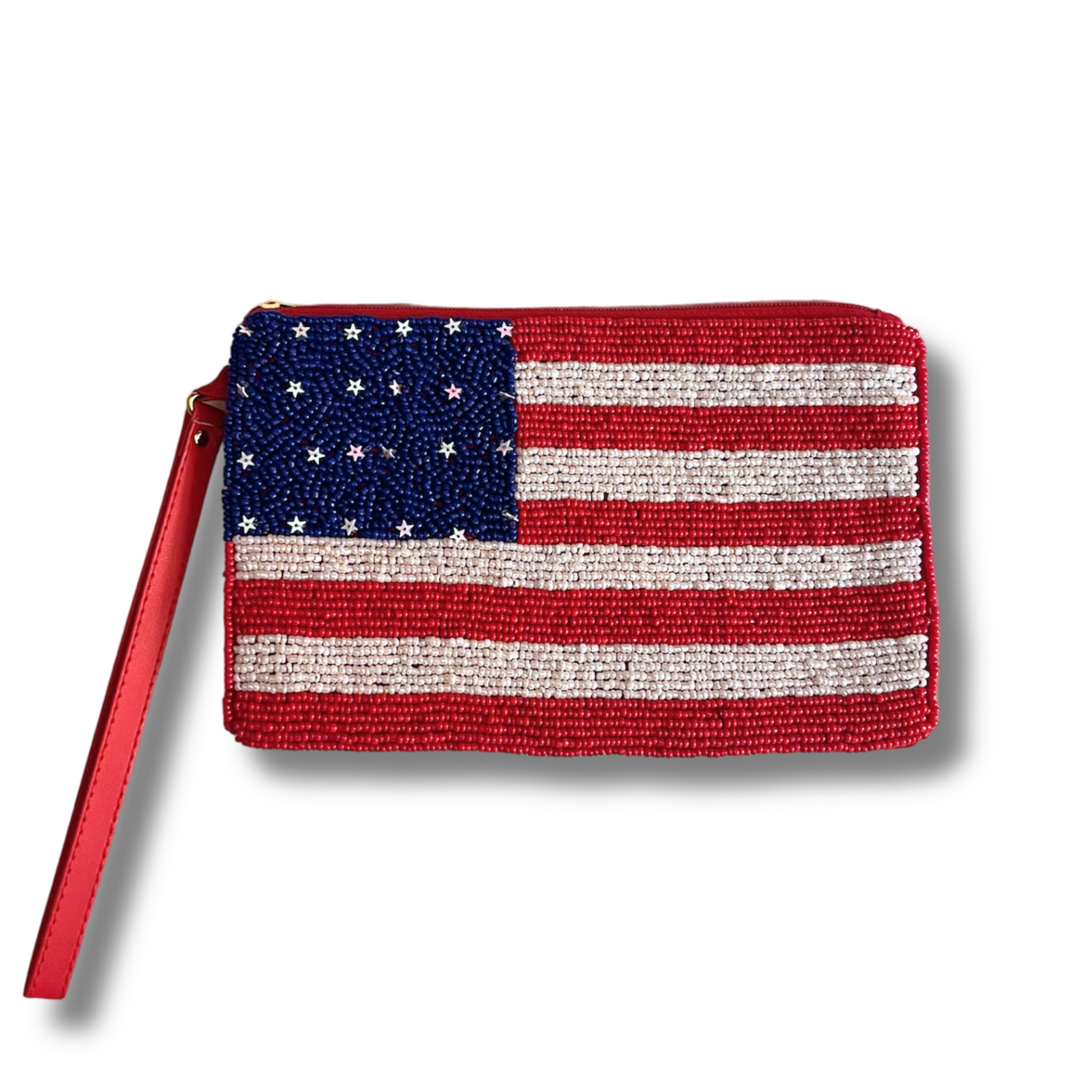 American Flag Beaded Wristlet